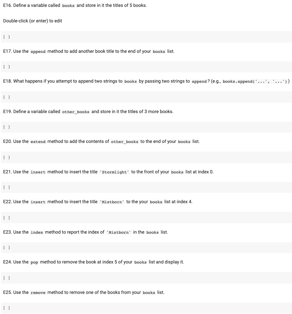 Solved E16 Define A Variable Called Books And Store In It Chegg Com